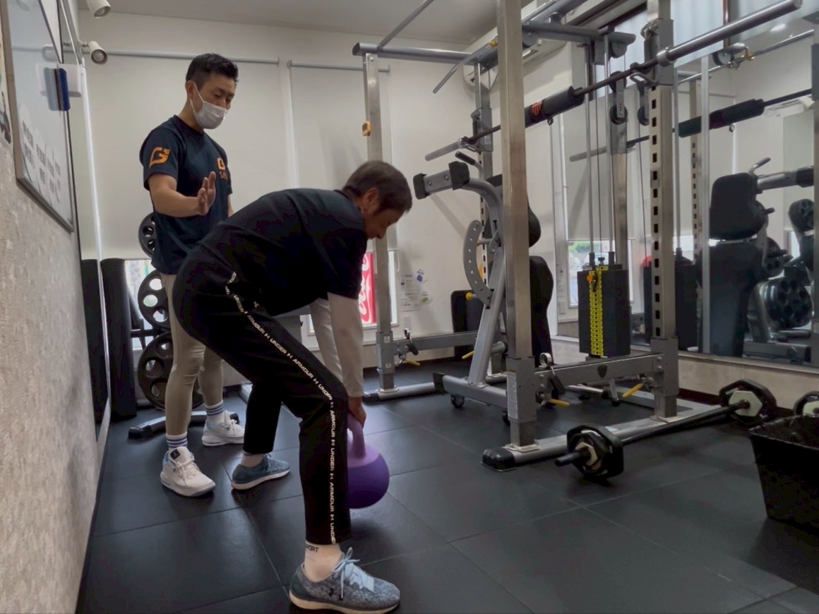 体重増加と膝の痛みに長年悩んでおり、人工股関節・人工靱帯の手術から20年以上経っていたこともあり将来への不安がありました。「痛みなく動けるようになりたい」という思いでパーソナルを始めました。